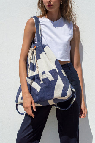 If we had to describe the perfect summer bag, we'd say it needs to be stylish for a stroll and the beach, wearable on your shoulder for style but also practical like a backpack. It should totally be sand and sun-resistant and if it gets a little dirty, it shouldn't show too much. Plus, it needs pockets and to look awesome. Can we make that happen? Totally!! Our new bag is literally handcrafted, piece by piece. We took your fave light beach towels and created unique summer bags that you can rock on your shoulder or as a backpack, depending on what you need. So cool, right?