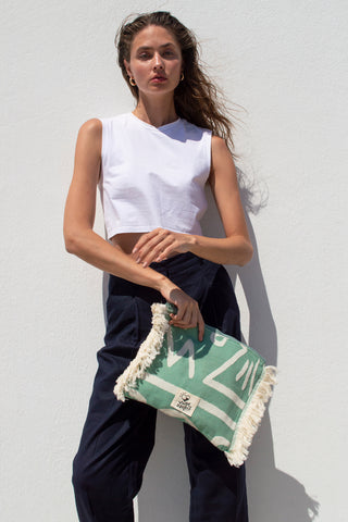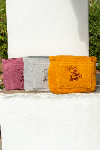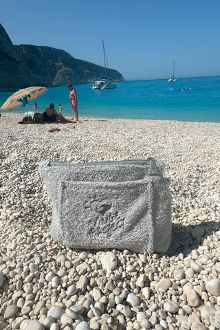 Our Beach Clutch Bag is our jem. It will become your favorite travel companion. It's colors and cute embroidery will earn lots of compliments. In the same time, it is very practical and useful for your goodies that want to keep safe from getting wet (phone, wallet, keys etc). Also, can be used as a cosmetic bag or your wet swimsuit pouch.
