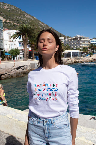 Elevate your summer style with our soft cotton long sleeve t-shirts, adorned with playful embroidery inspired by Greece. Made for the modern young woman, these long sleeve shirts combine comfort and charm effortlessly, making them perfect for soaking up the sun in style. Embrace the carefree spirit of Greek summers with every wear.